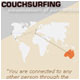 | Describtion | Traveller's community of international connections. Couchsurfing is a social database community for travellers with the idea to visit countries to meet local people for a more fullfilling experience. The community is also focused on sharing knowledge about locations from all over the world. The particpants database is based on the theory of the six degrees of seperations: "You are connected to any other person through the relationships of everyone you know and who they know. There's only a six degree of seperation in between.” The community visualy reflects the connections of its members. |
