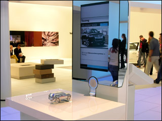 | Park Assist and Driver Assist Systems left: interactive presentation of the Park Assist right: interactive presentation of driver assistant systems with a tangible interface which has in- and output. kunst-stoff was responsible for concept and parts of the design.